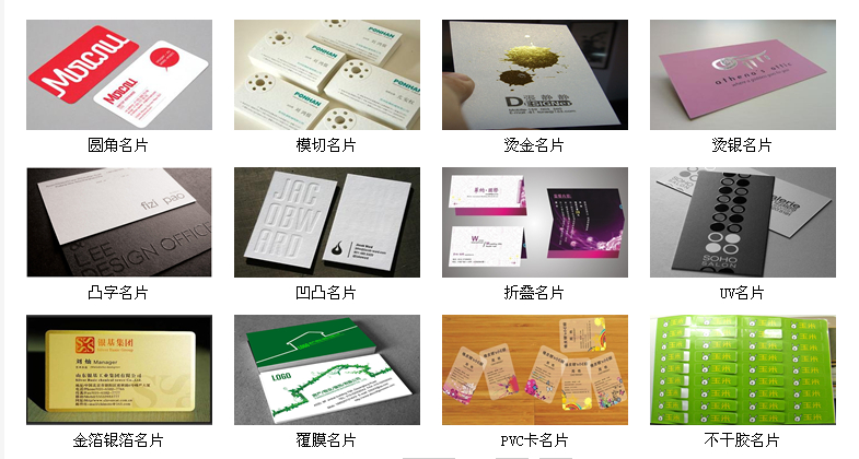 印刷工藝:名片圓角、凹凸名片、折疊名片、燙金名片、燙銀名片、凸字名片、異型名片